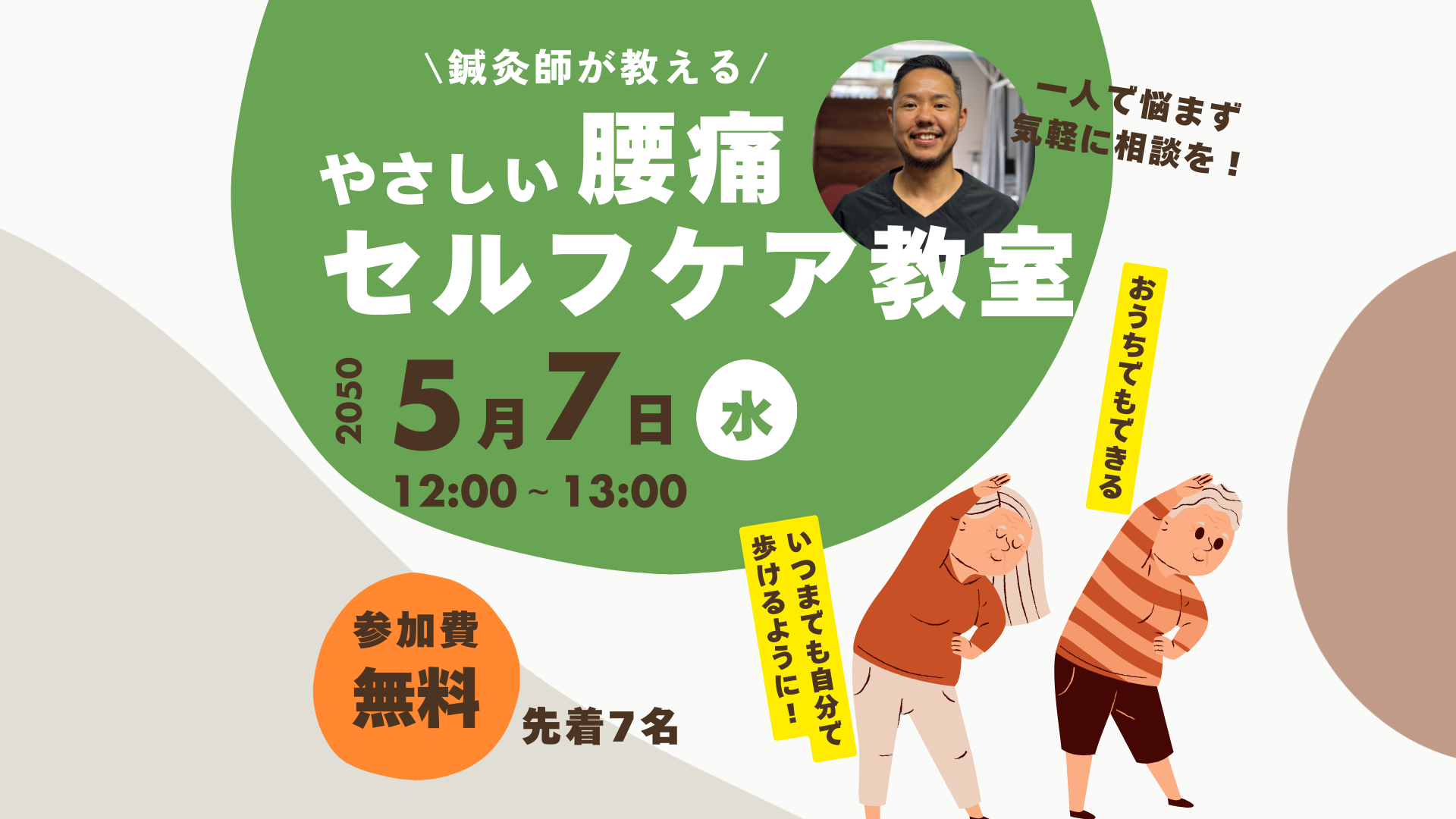 5月7日(水)に、はにぽんプラザで腰痛セルフケア教室を開催することになりました!